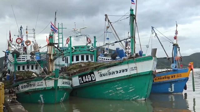 สงขลา-เรือประมงยังคงจอดท่าหยุดออกเรือ หลังคลื่นลมยังมีความรุนแรง ส่งผลกระทบสินค้าสัตว์น้ำในตลาดทรัพย์สินพลาซ่าขาดแคลน ปลาจากเรือประมงในอ่าวไทย