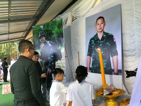 วันที่ 16 ธันวาคม 2568 เวลา 15.00 น. วัดป่าพุทธภาวัน บ้านสมสะอาด หมู่ 7 ต.สมสะอาด อ.กุฉินารายณ์ จ.กาฬสินธุ์ ทหารจากกรมทหารราบที่ 16 เคลื่อนย้ายศพส.อ.อภิสิทธิ์ บุนนาค หรือ “หมู่ตี๋” กองกำลังรบกองทัพภาคที่ 2 ตำแหน่งนายสิบพยาบาลประจำ พัน.ร.11 ในพื้นที่สนามรบ สังกัดกรมทหารราบที่ 16 พัน.3 (ร.16 พัน.3) ที่เสียชีวิตกลางสมรภูมิภูมะเขือ อ.กันทรลักษ์ จ.ศรีสะเกษ จากการโจมตีด้วยจรวด BM-21 ของฝ่ายกัมพูชา ขณะปฏิบัติหน้าที่ภายในบังเกอร์พื้นที่ภูมะเขือ เมื่อช่วงค่ำของวันที่ 14 ธันวาคม 2568 มาบำเพ็ญกุศล และเตรียมประกอบพิธีพระราชทานเพลิงศพ ท่ามกลางบรรยากาศที่โศกเศร้า