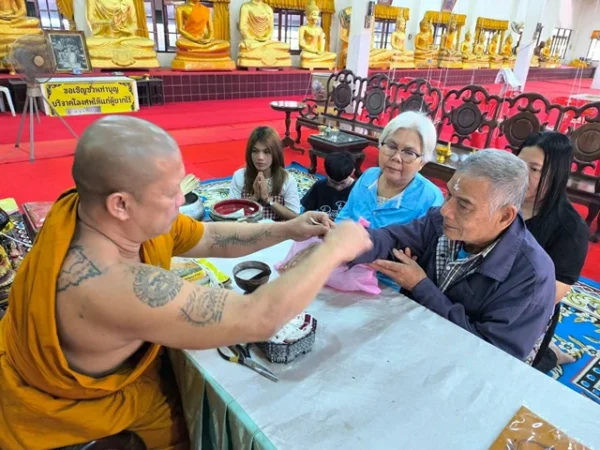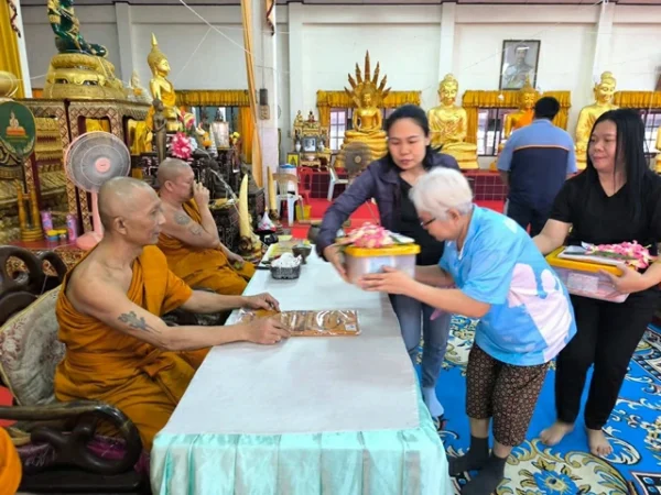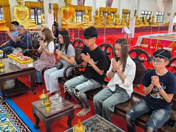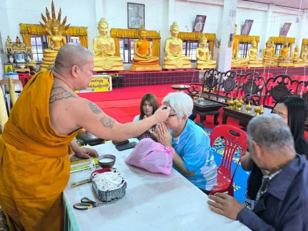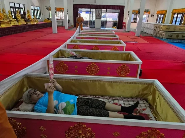 นครนายก – นักท่องเที่ยวสายมูให้ความศรัทธาเดินทางเข้าพิธีนอนโลงศพวัดหลวงพ่อปากแดงจังหวัดนครนายก