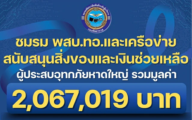 พลังน้ำใจไม่ทิ้งกัน! พสบ.ทอ. จับมือภาคีเครือข่าย มอบเงินและสิ่งของบรรเทาทุกข์ รวมมูลค่า 2,067,019 บาท ช่วยเหลือผู้ประสบอุทกภัยหาดใหญ่ และฟื้นฟูศูนย์พัฒนาเด็กเล็ก กองบิน 56