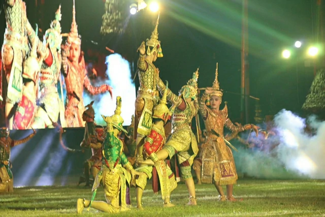 ในโอกาสนี้ ได้ร่วมรับชมการแสดงโขนจากโรงเรียนราษฎร์วิทยา และการแสดงละครอิงประวัติศาสตร์ประกอบแสง สี เสียง เพื่อเทิดพระเกียรติสมเด็จพระเจ้าตากสินมหาราช