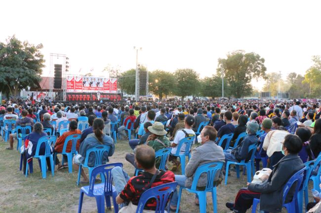 โดยบรรยากาศการปราศรัยเป็นไปอย่างคึกคัก นายจุลพันธ์ อมรวิวัฒน์ หัวหน้าพรรคเพื่อไทย และแกนนำพรรคฯสลับสับเปลี่ยนกันขึ้นเวที เพื่อนำเสนอนโยบายที่จับต้องได้จริง ภายใต้สโลแกนหลัก “เพื่อไทยทำได้” ซึ่งแต่ละนโยบายได้มุ่งเน้นการแก้ปัญหาเศรษฐกิจ ปากท้อง และยกระดับคุณภาพชีวิตของพี่น้องชาวอีสาน