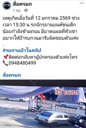 เมื่อเวลา 15.30 น.ของวันที่ 12 มกราคม 2569 กล้องวงจรปิดได้จับภาพขณะที่โรงเรียนได้ปล่อยเด็กนักเรียนหลังเลิกเรียน บางรายมีผู้ปกครองมารับ และบางรายได้เดินไปหาผู้ปกครองที่ทำงาน อย่างเช่นเด็กนักเรียนแห่งหนึ่งในตัวเมืองนครนายก หลังจากเลิกเรียนได้เดินมาที่บริเวณสนามตีเทนนิสซึ่งอยู่ฝั่งตรงข้ามกับสถานีตำรวจภูธรเมืองนครนายก หยุดยืนเพื่อรอข้ามถนนไปอีกฝั่งเพื่อไปหาผู้ปกครอง เป็นจังหวะได้มีรถจักรยานยนต์ขับมาเฉี่ยวชนเด็กนักเรียนล้มลงหัวเข่ากระแทกพื้นถนนได้รับบาดเจ็บ และขับรถจักรยานยนต์หนีไปไม่มาดู