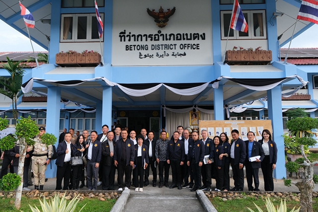พลเอก สวัสดิ์ ทัศนา ประธานคณะกรรมาธิการการทหารและความมั่นคงของรัฐ นายสมบูรณ์ หนูนวล รองประธาน คนที่หนึ่ง ร้อยตำรวจเอก ฉลอง ทองนะ รองประธาน คนที่สอง ผู้ช่วยศาสตราจารย์นิฟาริด ระเด่นอาหมัด รองประธาน คนที่สาม อนุกรรมาธิการกิจการทหารด้านความมั่นคงแบบองค์รวม และที่ปรึกษาอนุกรรมาธิการกิจการทหารด้านความมั่นคงแบบองค์รวม ได้เดินทางลงพื้นที่ติดตามตรวจสอบการขับเคลื่อนการแก้ไขปัญหาความไม่สงบและงานความมั่นคงแบบองค์รวม ณ ที่ว่าการอำเภอเบตง จังหวัดยะลา