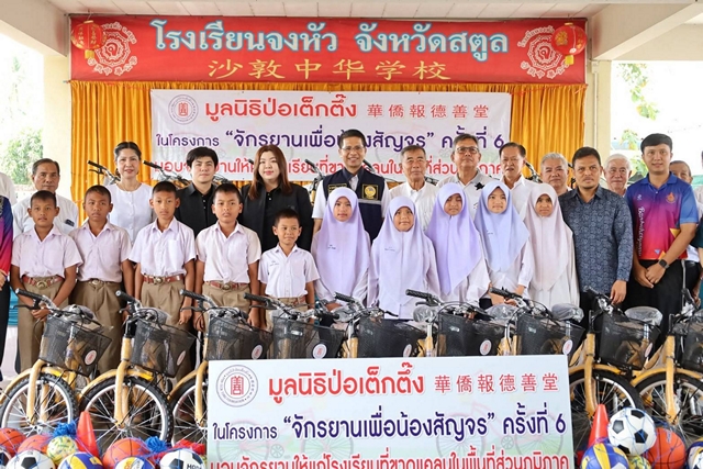 สตูล ร่วมมูลนิธิป่อเต็กตึ๊ง มอบจักรยานให้นักเรียนในโครงการ “จักรยานเพื่อน้องสัญจร” ครั้งที่ 6
