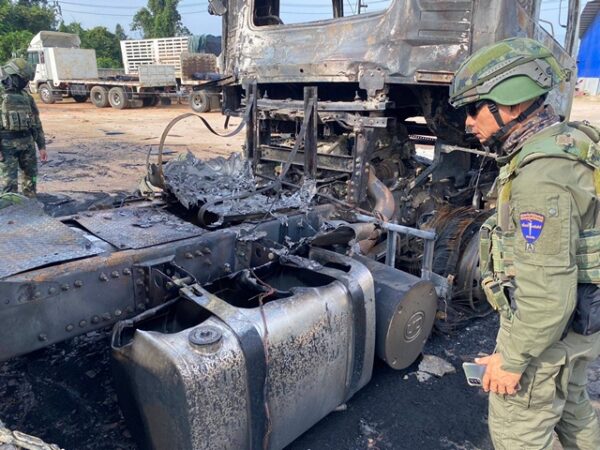 นราธิวาส-กอ.รมน.ภาค 4 สน. ชี้แจงเหตุเพลิงไหม้รถเทรลเลอร์ในพื้นที่สุไหงโก-ลก ยืนยันไม่ใช่เหตุระเบิด อยู่ระหว่างพิสูจน์หาสาเหตุที่แท้จริง