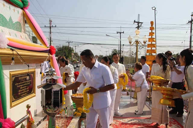 ภาคเช้า นางละอองเพชร พุฒิพัฒน์พานิช นายอำเภอจตุรพักตรพิมาน พร้อมหัวหน้าส่วนราชการ พ่อค้า คหบดี และประชาชน ร่วมถวายเครื่องสักการะแด่พระภูมิเจ้าที่ พระพุทธจตุรพิธพรชัยมงคล พระธาดาอำนวยเดช ศาลหลักเมือง ศาลปู่ฤาษีชินราช สักการะพระพุทธศรีศากยพรหมญาณ และพระบรมราชานุสาวรีย์รัชกาลที่ 5