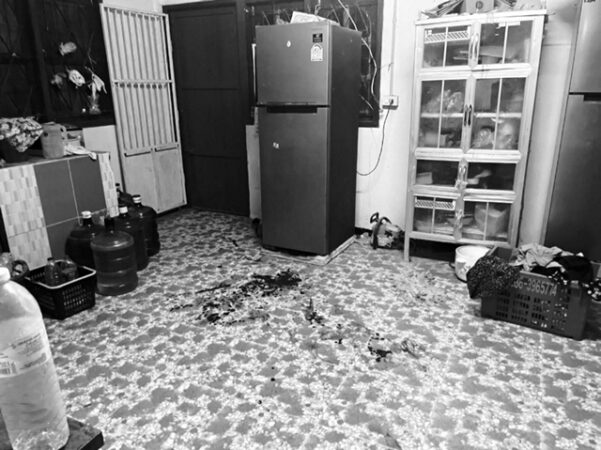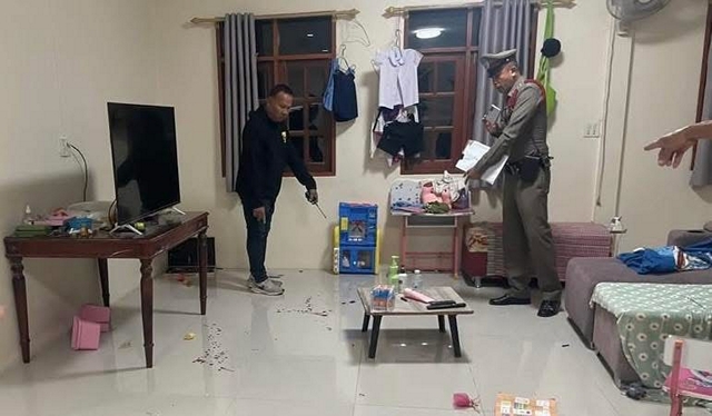 ที่เกิดเหตุเป็นบ้านปูนชั้นเดียว ภายในห้องนั่งเล่นพบคราบเลือดจำนวนมาก ผู้บาดเจ็บเป็นเด็กหญิงอายุ 6 ปี ซึ่งเจ้าหน้าที่กู้ชีพได้เร่งนำส่งโรงพยาบาลก่อนเจ้าหน้าที่จะเดินทางถึง โดยพบว่ามีบาดแผลบริเวณลำคอและใบหน้า