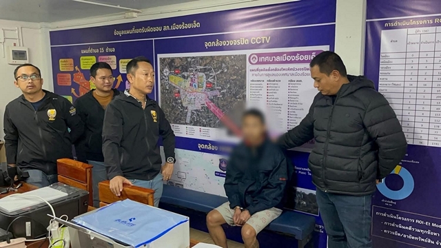 ต่อมา ชุดสืบสวน สภ.เมืองร้อยเอ็ด ลงพื้นที่ติดตามตัวผู้ต้องสงสัย จนสามารถจับกุมตัวได้ในหมู่บ้านเดียวกัน ทราบชื่อคือ นายอรรถพล(นามสมมุติ) อายุ 35 ปี โดยผู้ต้องหาให้การรับสารภาพ อ้างว่าตนมีอาการหูแว่ว คล้ายมีเสียงสั่งให้มาก่อเหตุ