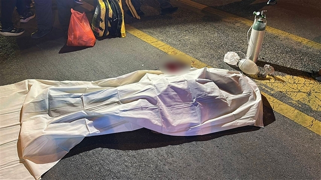 เวลา 20:00 กู้ภัยร่วมกตัญญูนครนายกกำลังเร่งปั๊มหัวใจ ชายชาวพม่า นอนหมดสติจมกองเลือดอยู่บริเวณกลางถนนสามแยกวังยาว ถนนนครนายก-สาริกา ฝั่งมุ่งหน้าขึ้นเขื่อนขุนด่านปราการชล กู้ภัยเร่งปั๊มหัวใจพร้อมรถกู้ชีพโรงพยาบาลนครนายก แต่ไม่เป็นผลเสียชีวิตในที่เกิดเหตุ