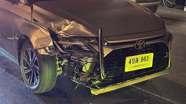 ส่วนผู้ขับขี่รถเก๋ง เป็นหญิง(ไม่ขอสัมภาษณ์ดูแลอาการตกใจ ) กำลังขับรถกลับบ้าน จากนั้นมาถึงตรงแยกรถจักรยานยนต์ได้พุ่งออกมา ทำให้พุ่งชนอย่างจังจนรถจักรยานยนต์และร่างกระเด็นไปไกลกว่า 30 เมตร เบื้องต้นทางผู้ขับขี่รถเก๋ง มีอาการบาดเจ็บนำส่งโรงพยาบาลนครนายก