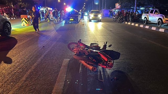 แรงงานชาวพม่าขี่รถจักรยานยนต์ข้ามถนน4เลน หลังเลิกงาน ไปเที่ยวงานวัด ตัดหน้ารถเก๋งทางตรงถูกชนตายคาที่ บนถนนสายถนนนครนายก-สาริกา ฝั่งมุ่งหน้าขึ้นเขื่อนขุนด่านปราการชล