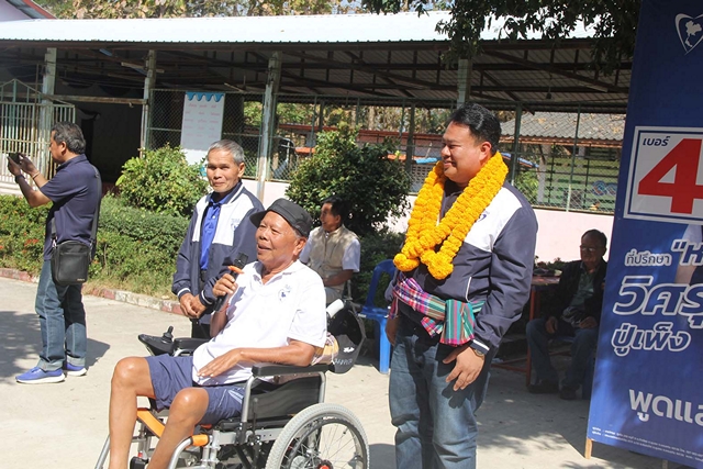 ขอนแก่น พ่อผู้สมัครสส.นั่งรถเข็นช่วยหาเสียงฝากลูกเรื่องผู้สูงอายุ