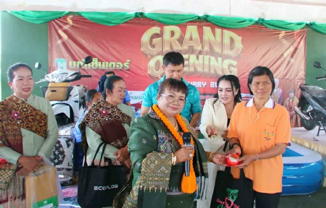 นางมณีรัตน์ ไชยสีหา อายุ 59 ปี เจ้าภาพจัดงานกล่าวว่า ดร.ไรเนอร์ คุ๊ปปี้ สามีตน เป็นนักธุรกิจชาวเยอรมัน ขณะที่ตนมีกิจการผลิตน้ำดื่มจำหน่าย ปีนี้มีเป้าหมายขยายกิจการเปิดร้านขายสินค้าครบวงจรในหมู่บ้าน เพื่ออำนวยความสะดวกให้กับเพื่อนบ้าน ที่ส่วนใหญ่ประกอบอาชีพเกษตรกรรม ทำนา ทำไร่ ได้มาจับจ่ายซื้อหา โดยไม่ต้องสิ้นเปลืองค่าใช้จ่าย ในการเดินทางเข้าไปหาซื้อตามร้านในตัวอำเภอหรือในตัวจังหวัด จึงได้เปิดร้านมณีเซ็นเตอร์ เพื่อเป็นตัวแทนจำหน่ายสินค้าต่างๆ ที่ชาวบ้านสามารถเข้าถึงได้ง่าย จำหน่ายในราคายุติธรรม ซึ่งการก่อสร้างแล้วเสร็จเรียบร้อย เหลือเพียงนำสินค้ามาจำหน่าย
