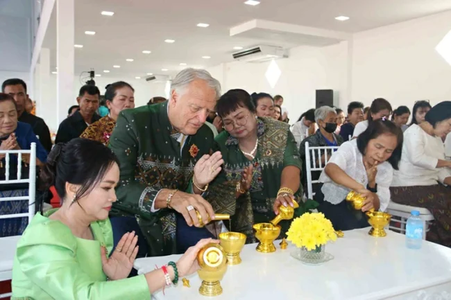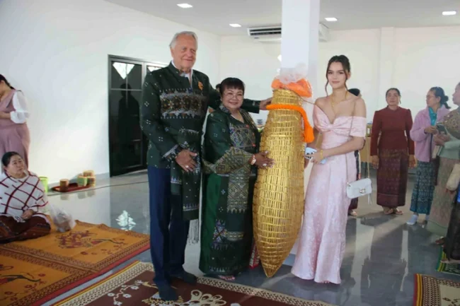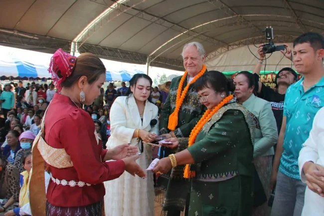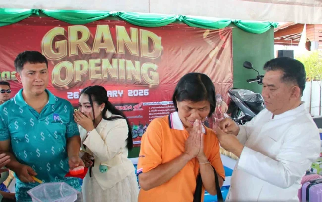 กาฬสินธุ์ฮือฮาครอบครัวฝรั่งใจป้ำแจกเงิน สร้อยคอทองคำ จ้างหมอลำ ใช้งบนับล้านฉลองเปิดร้านใหม่