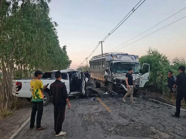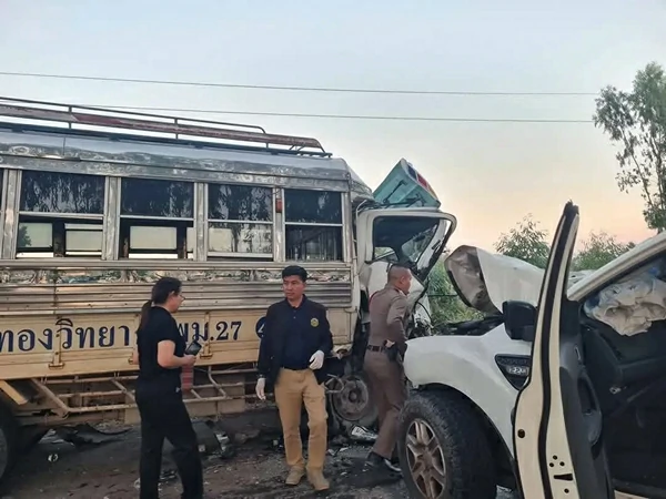 ร้อยเอ็ด…หวิดตายหมู่…กระบะชนประสานงารถรับส่งนักเรียน เจ็บระนาว