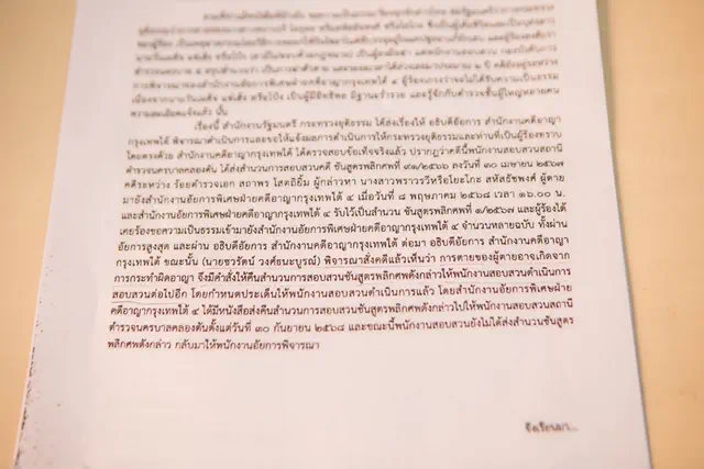 แต่พนักงานสอบสวนสรุปสำนวนคดีว่าญาติไม่ติดใจเอาความ แต่แม่ติดใจการเสียชีวิตตั้งแต่ต้น ซึ่งขัดแย้งกับแม่ โดยสรุปว่าเป็นการฆ่าตัวตายแต่แม่เชื่อว่าเป็นการฆาตกรรม ภายหลังที่ส่งเรื่องไปให้อัยการแล้ว อัยการมีความเห็นว่า เชื่อว่าถูกฆาตกรรม จากนั้นมีการคืนสำนวนให้กับเจ้าหน้าที่ตำรวจ โดยให้สอบสวนใหม่ ซึ่งก็ยังอยู่ขั้นตอนการสอบสวนอยู่ ซึ่งตนกลัวว่าจะไม่ได้รับความเป็นธรรม จึงอยากให้เปลี่ยนพนักงานสอบสวนใหม่ โดยฝากถึงท่าน ผบ.ตร.ให้ช่วย เปลี่ยนพนักงานสอบสวน ไปกองปราบ เพื่อให้ได้รับความเป็นธรรม