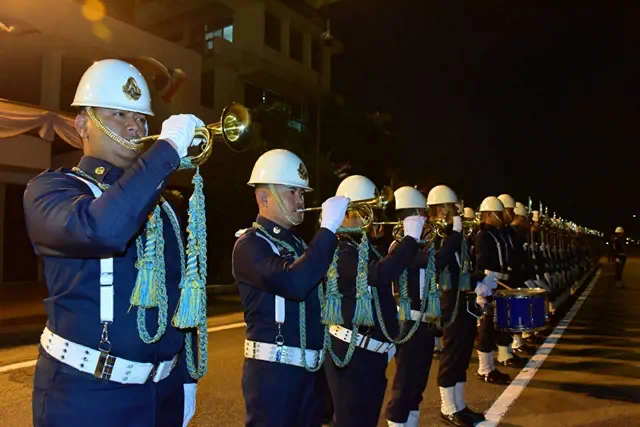 พิธีเริ่มต้นขึ้นอย่างสมเกียรติ โดยทหารกองเกียรติยศได้ตั้งแถวรับร่างของนักบินทั้ง 2 ท่าน ได้แก่ นาวาอากาศตรี สมัชชา คุณมาศ เรืออากาศโท กรวิทญ์ เจนคิด