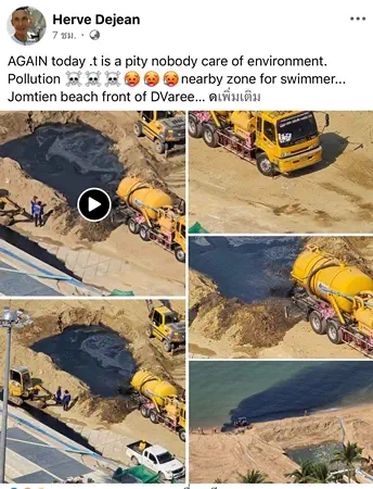 มีผู้ใช้เฟซบุ๊กโพสต์คลิปน้ำเสียถูกปล่อยลงสู่ทะเลทำให้น้ำทะเลชายหาดจอมเทียน อ.บางละมุง จ.ชลบุรี กลายเป็นสีดำ โดยมีการแชร์คลิปกันอย่างรวดเร็ว