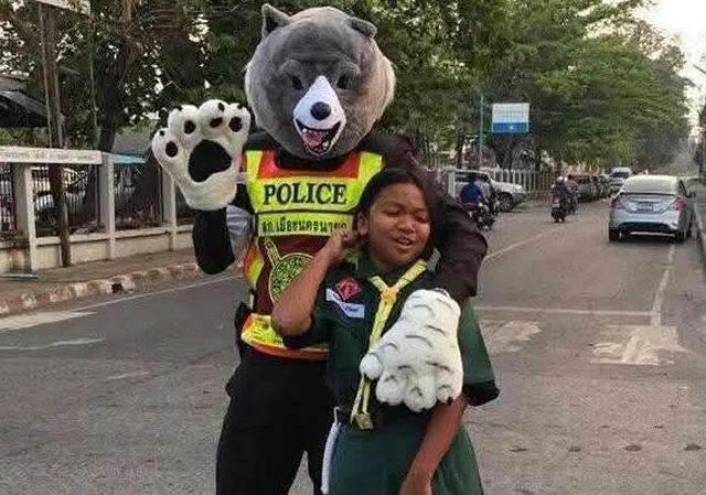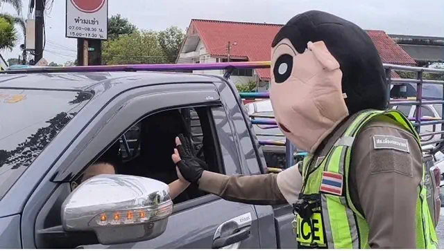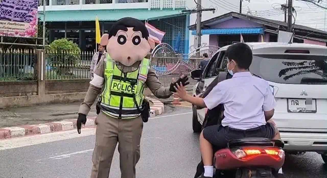 ตำรวจจราจรนครนายก สร้างความประทับใจและรอยยิ้มให้กับเด็กนักเรียนและผู้ปกครองที่เรียกร้องอยากให้ ตำรวจจราจรใจดีสวมหน้ากากตัวการ์ตูนยอดฮิตอย่าง หมีแพนด้า ชินจัง ไดโนเสาร์ ฯ ออกมาปฏิบัติหน้าที่โบกรถในยามเช้า หวังเป็นส่วนหนึ่งในการกระตุ้นให้เด็กๆ รู้สึกสนุกและอยากมาโรงเรียนเร็วขึ้นเพื่อจับมือทักทายกันในยามเช้า