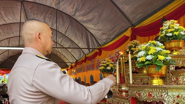 ในคุณงามความดี ของทหารผ่านศึก ที่ได้เสียสละเลือดเนื้อและชีวิต เพื่อปกป้องอธิปไตย ของประเทศชาติ ในช่วงเช้า ได้จัดพิธีสงฆ์ โดยนิมนต์พระสงฆ์ จำนวน 10 รูป สวดเจริญพระพุทธมนต์ เพื่อความเป็นสิริมงคลแก่เหล่าทหารผ่านศึกและครอบครัว พร้อมประกอบพิธีทักษิณานุประทาน เพื่ออุทิศส่วนบุญส่วนกุศล ให้แด่ดวงวิญญาณของเหล่านักรบไทยทุกๆ สมรภูมิ ซึ่ง เหล่าทหารเหล่านั้น ที่ได้ล่วงลับไปแล้ว ได้จารึกเกียรติประวัติแห่งความกล้าหาญ หลังจากนั้นประธานในพิธีฯ พร้อมด้วยหน่วยราชการต่างๆและผู้แทนจากหน่วยงานต่างๆ ได้ร่วมกันวางพวงมาลา