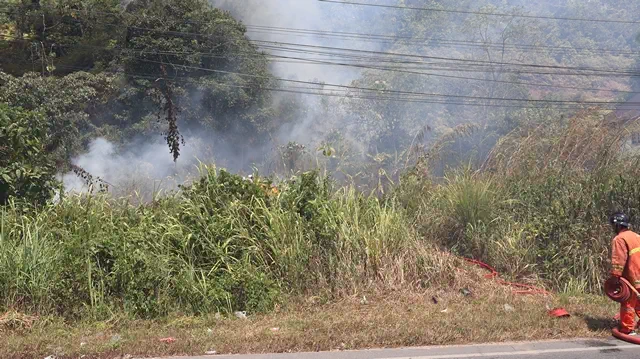ยะลา-เบตง ไฟไหม้ป่าหญ้าข้างทาง โชคดีเจ้าหน้าที่ดับทัน ไม่งั้นลามขึ้นเขาไหม้สวนยางพาราของชาวบ้านแน่นอน