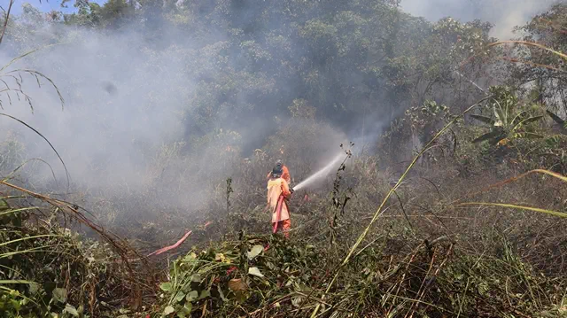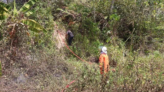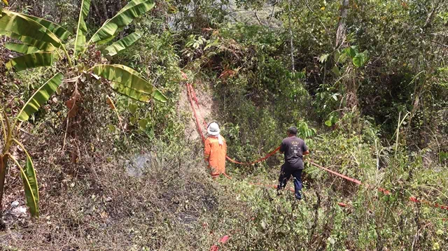 เจ้าหน้าที่ต้องลากสาย ปีนขึ้นไปบนเขาที่สูงชัน เพื่อฉีดน้ำไม่ให้ไฟลุกลามเข้าไปยังสวนยางพาราของชาวบ้าน แต่เนื่องด้วยมีกระแสลมและสภาพอากาศที่ร้อนแห้งแล้งทำให้สะเก็ดไฟปลิวไปติดหญ้าหลายจุด จึงต้องประสานนายยะโกะ ปะจู หัวหน้างานป้องกันและบรรเทาสาธารณภัยเทศบาลเมืองเบตง ขอสนับสนุนกำลังเจ้าหน้าที่ดับเพลิง และรถดับเพลิงอีกจำนวน 3 คัน เข้ามาช่วยดับไฟ และแจ้งเจ้าหน้าที่ตำรวจ สภ.ยะรม เข้ามาช่วยอำนวยความสะดวกด้านการจราจร เพราะถนนเส้นนี้เป็นเส้นหลัก ที่ชาวบ้านใช้สัญจรระหว่างเขตเทศบาลเมืองเบตงกับตำบลยะรม