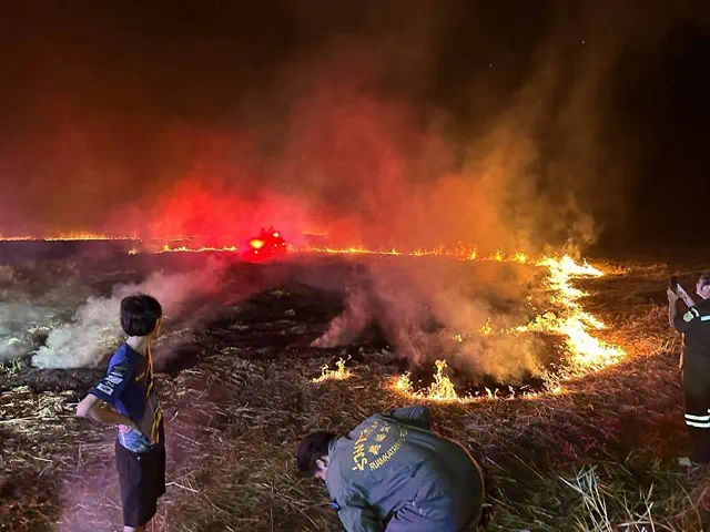 จังหวัดนครนายก รวมสรรพกำลังเจ้าหน้าที่ และรถดับเพลิง จำนวนมาก ระดมดับไฟลามทุ่งในพื้นที่ตำบลท่าเรือ อำเภอปากพลี หลังรุกไหม้ลามเป็นวงกว้าง ผู้ว่าราชการจังหวัดนครนายกออกปากกำชับผู้กำกับสภ.ปากพลี สืบหาผู้กระทำความผิดมาลงโทษให้ได้ ชี้การเผานาไม่ก่อให้เกิดประโยชน์ เกิดขึ้นจากกลุ่มคนบางกลุ่มคนที่มีความเห็นแก่ตัว ซี่งมีพื้นที่เสียหายจากเผานา 9500 ไร่ ในพื้นที่ อ.ปากพลี จ.นครนายก เมื่อวันที่ 27 มกราคม 2569
