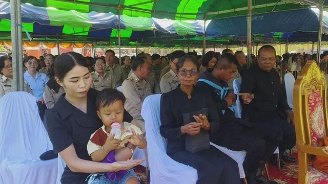 โดยมีนายสมพงษ์ คุ้มสุวรรณ ปลัดจังหวัดมุกดาหาร นายนราวิชญ์ มณีฤทธิ์ นายอำเภอคำชะอี หัวหน้าส่วนราชการ ประชาชน พร้อมด้วยสมาชิกครอบครัวบุ นำโดย นายเฉลิมชัย บุสภา (บิดา) และ นางวิไล บุสภา (มารดา) นางสาวรจรินทร์ ภรรยาของจ่าโต๋ ซึ่งปัจจุบันได้รับบรรจุเข้ารับราชการทหารในยศ ส.อ.หญิง รจรินทร์ เพื่อสานต่อหน้าที่รับใช้ชาติทดแทนสามีที่ล่วงลับ และบุตรชายของจ่าโต๋ ร่วมอยู่ในบรรยากาศแห่งความภาคภูมิใจด้วย