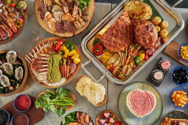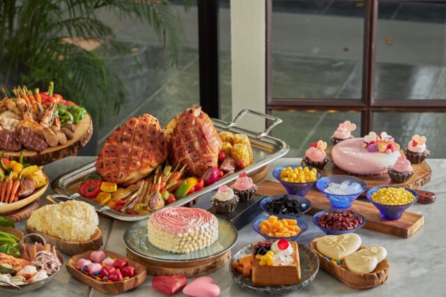 ไฮไลต์ของบุฟเฟต์ในคืนของวันแห่งความรัก ได้แก่ คาเวียร์ระดับพรีเมียมจากปลาสเตอร์เจียนคุณภาพเยี่ยม พร้อมคำแนะนำในการเลือกคาเวียร์ให้เหมาะกับรสนิยม แฮมอบเคลือบน้ำตาลทรายแดงและน้ำผึ้ง เสิร์ฟคู่แครอทและมันบดเนื้อนุ่ม ซี่โครงแกะหมักซอสเพสโต้ย่างจนสุกนุ่มพอดี จากนั้นนำไปอบพร้อมผักเคลผสมซอสเพสโต้เพิ่มสัมผัสที่กรุบกรอบ พร้อมด้วยเมนูสตรีทฟู้ดยอดนิยมอย่าง ก๋วยเตี๋ยวเย็นตาโฟ และเมนูของหวานพิเศษเฉพาะวันวาเลนไทน์ อย่างฮันนี่โทสต์ ซึ่งนำขนมปังเนื้อนุ่มมาอบพร้อมเนยจนชุ่มฉ่ำ ราดด้วยน้ำผึ้ง รับประทานพร้อมเครื่องเคียงอันหลากหลาย