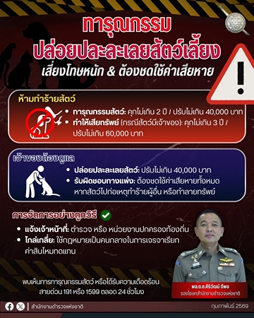 สำนักงานตำรวจแห่งชาติตีแผ่ข้อกฎหมายทารุณกรรม-ปล่อยปละละเลยสัตว์เลี้ยง เสี่ยงโทษหนักและต้องชดใช้ค่าเสียหาย