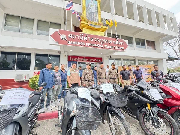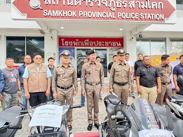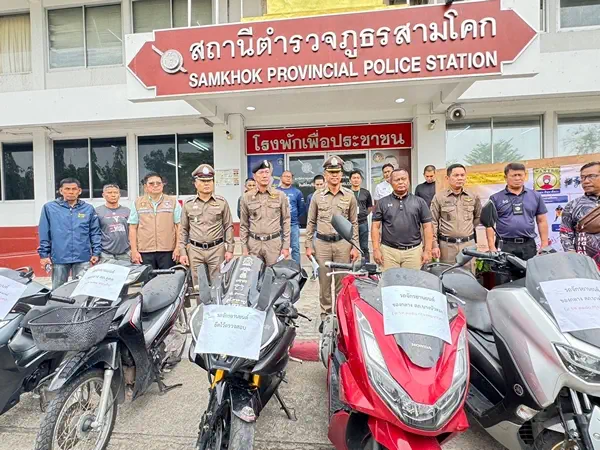 ปทุมธานี “โชว์ผลงาน” ตำรวจ สภ.สามโคก จับกุมแก๊งค์โจรกรรมรถจักรยานยนต์ ในเขตพื้นที่ จังหวัดปทุมธานี