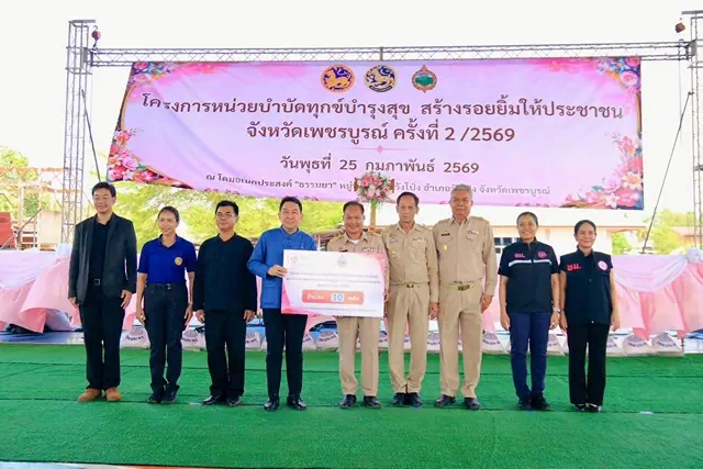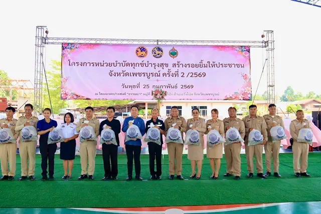เมื่อเวลา 09.00 น. วันที่ 25 กุมภาพันธ์ 2569 นายศรัณยู มีทองคำ ผู้ว่าราชการจังหวัดเพชรบูรณ์ เป็นประธานในพิธีเปิดโครงการ “หน่วยบำบัดทุกข์ บำรุงสุข สร้างรอยยิ้มให้กับประชาชน” ประจำปีงบประมาณ พ.ศ.2569 (ครั้งที่ 2/2569) ณ โดมเอนกประสงค์ “ธรรมยา” เทศบาลตำบลวังโป่ง อำเภอวังโป่ง จังหวัดเพชรบูรณ์ โดยมีนายกเหล่ากาชาดจังหวัดเพชรบูรณ์ รองผู้ว่าราชการจังหวัด หัวหน้าส่วนราชการ นายอำเภอ ผู้บริหารองค์กรปกครองส่วนท้องถิ่น กำนัน-ผู้ใหญ่บ้าน ข้าราชการ เจ้าหน้าที่ และประชาชนในพื้นที่เข้าร่วมอย่างคึกคัก