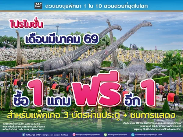 สวนนงนุชพัทยาจัดโปรโมชั่นแรงเดือนมีนาคม 69 “ซื้อ 1 แถมฟรีอีก 1” เอาใจคนที่พลาดโอกาสเดือนที่ผ่านมา
