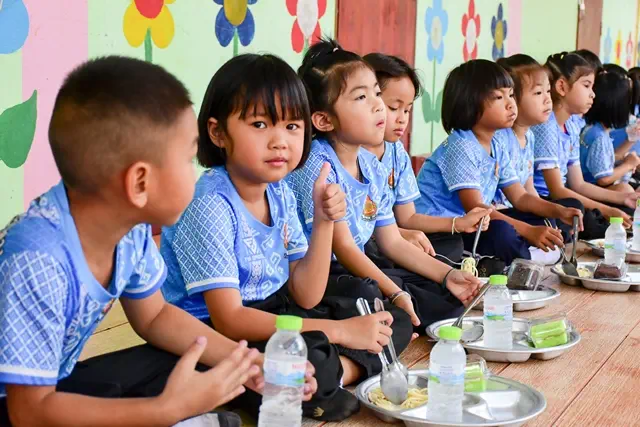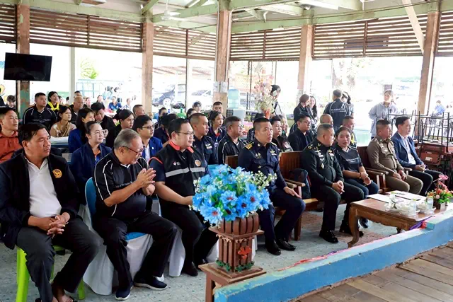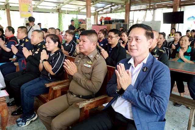 จากนั้นสมาชิกชมรมฯ ได้ร่วมกับแขกผู้มีเกียรติและคณะครู นักเรียน ผู้ปกครอง ผู้นำชุมชน เลี้ยงอาหารกลางวันเด็กนักเรียนทั้งโรงเรียน บรรยากาศเต็มไปด้วยความสุขและความสัมพันธ์อันดีระหว่างชมรมฯ หน่วยงาน องค์กรที่เข้าร่วมกิจกรรม และชุมชน