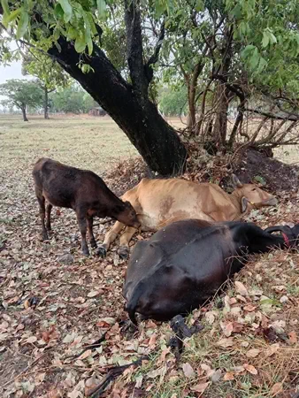 อำเภอพลับพลาชัย//เจ้าของวัวพูดไม่ออกปล่อยวัย 9 ตัวเลี้ยงตามทุ่งนาเกิดฝนตกออกมาต้อนกลับคอกไม่ได้ ได้ยินแค่เสียงฟ้าผ่า พอฝนหยุดออกมาดูแม่พันธุ์วัว 3 ตัวมูลค่า 1.5 แสนตายอยู่ใต้ต้นไม้ ทิ้งลูกน้อยโหยหาแม่ คาดแม่วัวมาหลบฝนใต้ต้นไม้ก่อนฟ้าผ่าลงมา หากเข้ามาหลบฝนด้วยกันทั้งหมดมีสิทธิ์เกลี้ยงคอก
