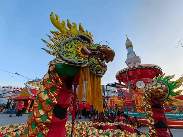 สุโขทัย-นายกมนู ลั่นกลองเปิดงานประเพณีแห่เจ้า ศาลเจ้าปุงเฒ่ากง – ม่าสุโขทัย ผัดหมี่มงคลแจกผู้ร่วมงาน