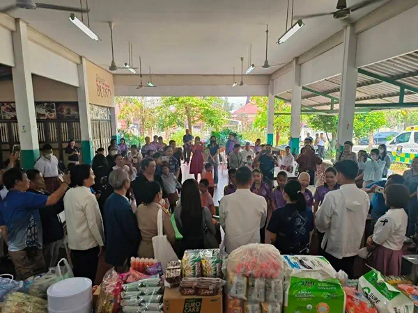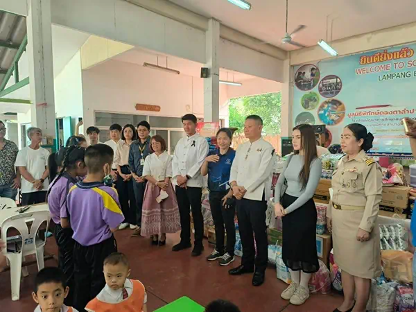 บรรยากาศเป็นไปอย่างอบอุ่นและเปี่ยมด้วยรอยยิ้ม ความปลื้มปิติของผู้ใหญ่ใจบุญที่มาร่วมสมทบทั้งอาหาร ของใช้ ต่างๆที่ทางโรงเรียนต้องใช้สำหรับเด็กนักเรียนทุกคน โดยมีนายวิวัฒน์ อินทร์ไทยวงศ์ ผู้ว่าราชการจังหวัดลำปาง พร้อมด้วย ผู้แทนจาก หน่วยงานภาครัฐ เอกชน และภาคีเครือข่ายภาคประขาชน และแหล่งข่าวต่างๆ ร่วมนำสิ่งของ ข้าวสาร อาหารแห้ง ของใช้ อุปกรณ์เครื่องเขียน อาหาร ขนม ไอศกรีม และมะพร้าวน้ำหอม ขมครก มามอบความสุขมื้อเที่ยงให้กับเด็กๆร่วมกัน