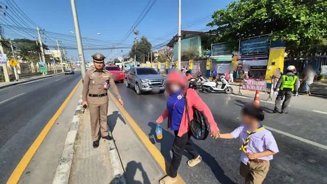 นครปฐม-ผกก.สภ.ดอนตูมลงพื้นที่อำนวยการจราจรหน้าโรงเรียนวัดสามง่ามพร้อมตรวจเยี่ยมประชาชนในพื้นที่เพื่อสร้างความมั่นใจให้ประชาชน
