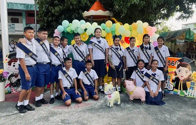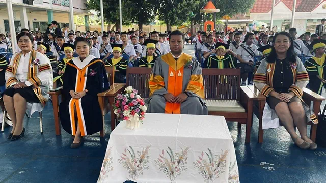 สำหรับปีการศึกษา 2568 มีนักเรียนสำเร็จการศึกษารวมทั้งสิ้น 102 คน ประกอบด้วย ระดับชั้นอนุบาล 3 จำนวน 11 คน ระดับชั้นประถมศึกษาปีที่ 6 จำนวน 50 คน และระดับชั้นมัธยมศึกษาปีที่ 3 จำนวน 41 คน ภายในงานมีการจัดกิจกรรม เริ่มตั้งแต่เวลา 06.30 น. นักเรียนชั้นอนุบาล 3 เข้าจุดเตรียมความพร้อม จากนั้นเวลา 07.00 – 08.00 น. นักเรียนชั้นอนุบาล 3 นักเรียนชั้นประถมศึกษาปีที่ 6 และนักเรียนชั้นมัธยมศึกษาปีที่ 3 ลงทะเบียนรายงานตัว