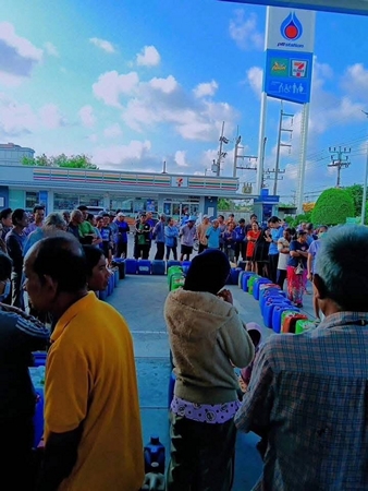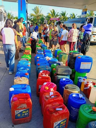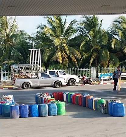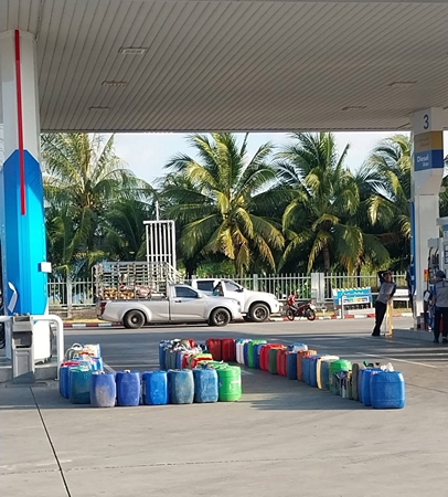สงขลา-เริ่มวิกฤต !ชาวบ้านอำเภอระโนด แห่นำแกลลอนน้ำมัน จองคิวรอเติมน้ำมัน