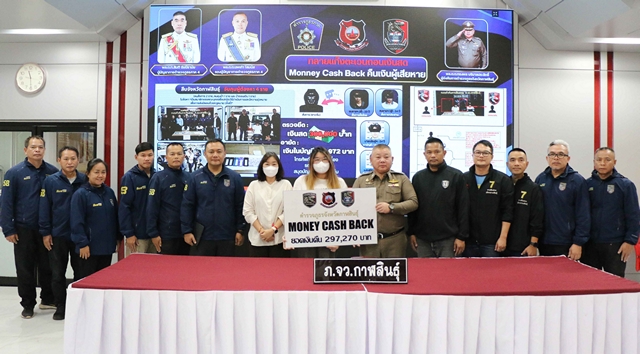 กาฬสินธุ์-ตร.กาฬสินธุ์สุดเจ๋ง ทลายแก๊งม้ากดเงินสมุนสแกมเมอร์ นำเงินส่งคืนผู้เสียหายสำเร็จ