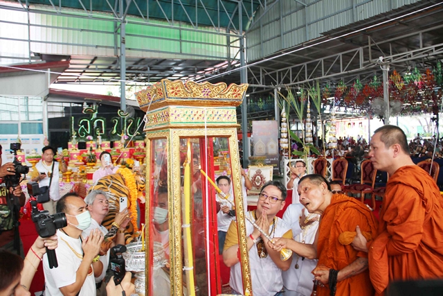 29สุดฮือฮา พิธีพุทธาภิเษกวัตถุมงคลรุ่น “พระขุนแผนหลังเสือ” พระเทพวัชรธรรมโสภณ หรือหลวงปู่ศิลา สิริจันโท เจ้าอาวาสวัดพระธาตุหมื่นหิน และวัดสวนธรรมปิติ (ธรรมอุทยาน) เกจิเมืองน้ำดำสำแดงฤทธิ์ หลังเสร็จพิธีพุทธาภิเษกดับเทียนชัยไม่มอด ต้องทำพิธีดับถึงสองครั้ง ตอกย้ำพลังความเข้มขลังศักดิ์สิทธิ์ และศรัทธาแรงกล้า ของวัตถุมงคลรุ่นล่าสุด สมชื่อที่หลวงปู่ศิลาตั้งให้อีกชื่อหนึ่งว่า “เสือมันดัง”