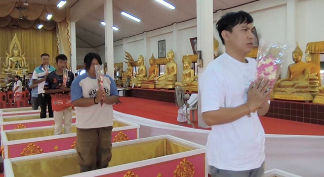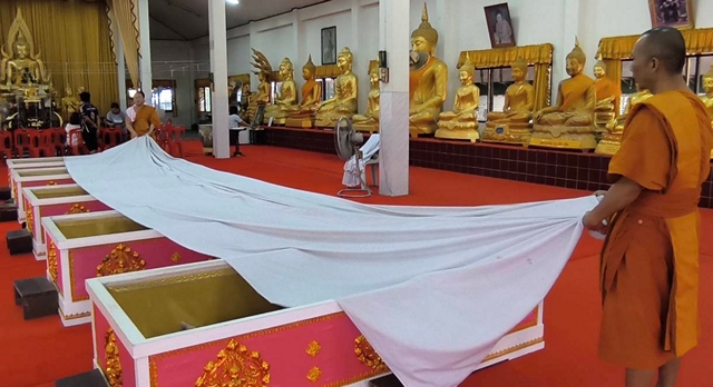 นครนายก – นักท่องเที่ยวเข้าพิธีนอนโลงศพแก้ปีชง เสริมดวงชะตาชีวิตวัดหลวงพ่อปากแดงจังหวัดนครนายก