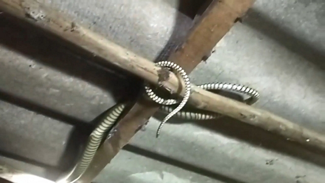 วันนี้ 31 มีนาคม 2569 ขณะที่นางวรรณี ธรรมชาติ อายุ 43 ปี ที่อยู่ 8/1 ม.6 ต.คลองกวาง อ.นาทวี จ.สงขลา เดินกลับจากการเก็บน้ำยางพารา เพื่อเข้าบ้าน พอย่างเท้าเข้าบ้านก็ได้ยินเสียงขู่ ฟ่อๆๆ สายตาของนางวรรณีฯก็มองเห็นงูอยู่บนหิ้งพระภายในบ้าน พองูเห็นคนก็เลื้อยขึ้นไปอยู่บนคานไม้หลังบ้าน พอนางวรรณีฯตั้งสติได้ จึงรีบแจ้งเจ้าหน้าที่ทีมปราบอสรพิษอาสาพิทักษ์งู จ.สงขลา ให้ช่วยมาจับงูให้ด้วย