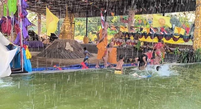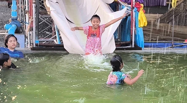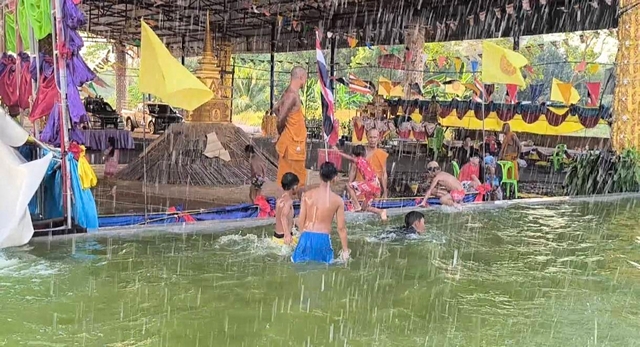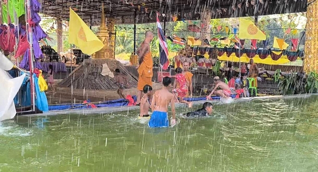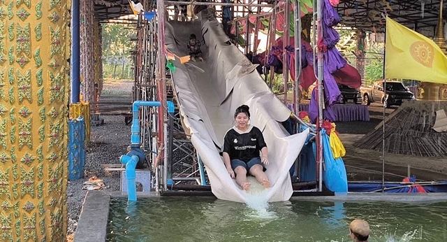 นครนายก อากาศร้อนจัดเจ้าอาวาสไอเดียเจ๋งจัดสไลด์เดอร์ให้เด็กๆคลายร้อนใกล้วันสงกรานต์ทุกปี