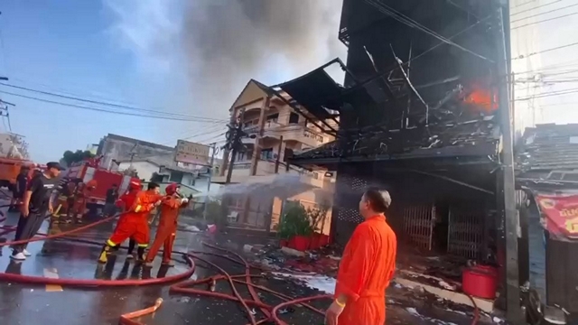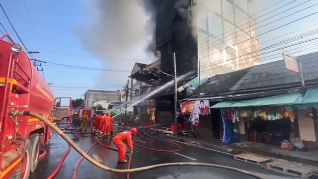 เจ้าหน้าที่ต้องใช้รถน้ำจำนวน 4 คัน กระจายกำลังล้อมตัวอาคารเพื่อฉีดน้ำสกัดไม่ให้เพลิงลุกลามไปยังบ้านเรือนข้างเคียง