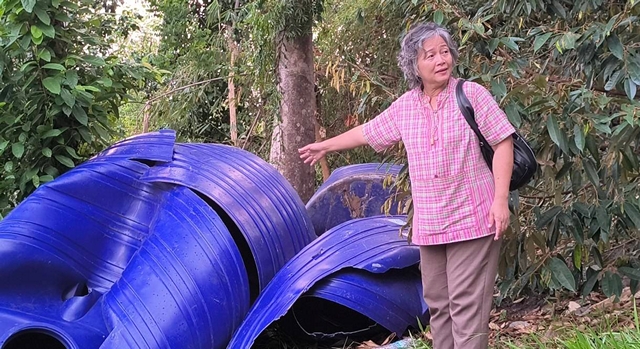 คุณศศิธร ได้บอกต่ออีกว่า ที่ผ่านมาช้างป่าจะลงมาหากินในพื้นที่สวนของเธอครั้งละ 1- 2 ตัว ที่ผ่านมาก็ไม่เคยทำลายทรัพย์สิน มีเพียงเก็บกินผลไม้ในสวนอันนี้เข้าใจได้ แต่มาครั้งนี้มันหนักเกินที่จะรับไหวที่ช้างป่าได้พากันมายังโขลงกว่า 10 ตัว หนำซ้ำยังทำลายถังเก็บน้ำพังทั้งหมดรวมถึงระบบน้ำ คาดว่าช้างป่าอาจจะอยากกินน้ำและรู้ว่าถังนี้บรรจุน้ำอยู่