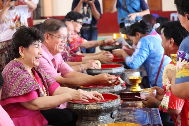 สมุทรปราการ-รดน้ำดำหัวครอบครัว “พาณิชย์พิศาล“ สืบสานประเพณีไทยส่งท้ายวันสงกรานต์