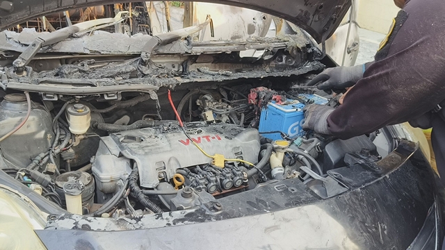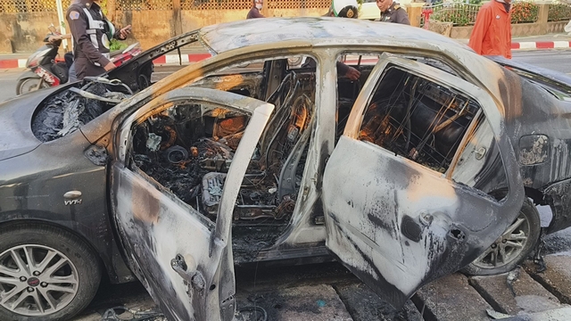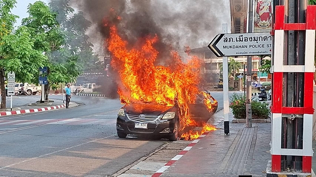 กระทั่งมาถึงบริเวณหน้าโรงพยาบาลมุกดาหาร จึงตัดสินใจจอดรถและดับเครื่องยนต์ พร้อมรีบให้ทุกคนลงจากรถทันที หลังจากนั้นไม่นาน ได้เกิดประกายไฟลุกขึ้นอย่างรวดเร็วภายในห้องโดยสาร ก่อนที่เพลิงจะลุกลามอย่างรุนแรง เจ้าของรถจึงรีบแจ้งขอความช่วยเหลือจากศูนย์ 199